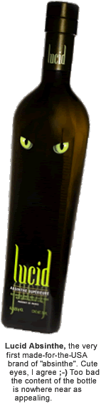 I don't wish to single out Lucid as there are now other brands of "absinthe" available in America. But Lucid was the first, and it is a very fitting example of just about everything that's wrong with absinthe in the USA.